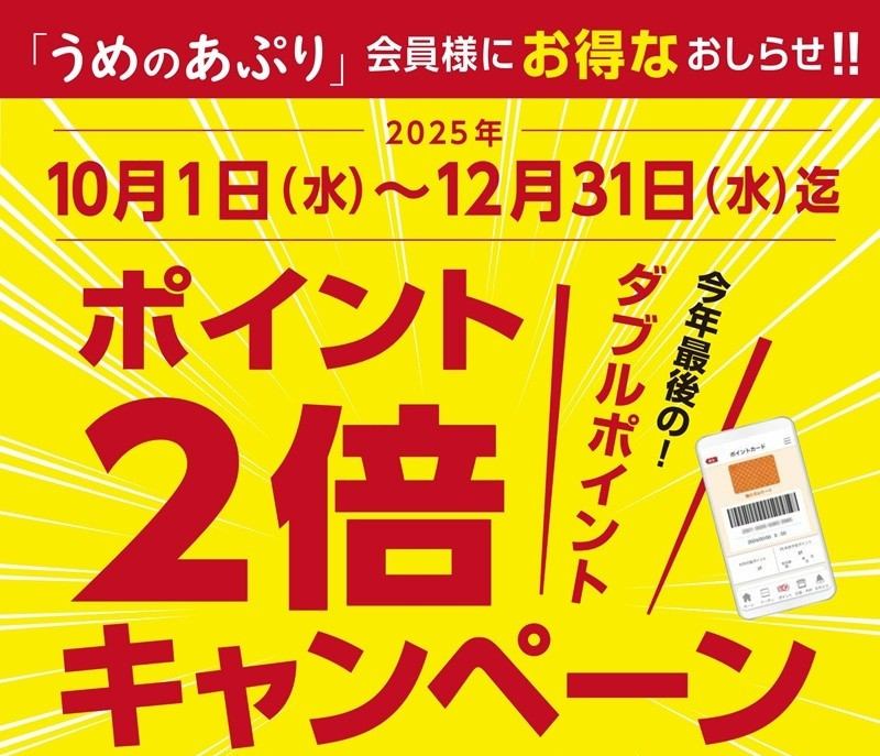 2025年10月1日(水)~2025年12月31日(水)の間、Uポイント2倍キャンペーンを開催します。