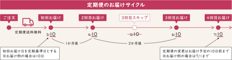 ・スキップ、お届け日変更、キャンセルはお問い合わせにてご連絡ください。
