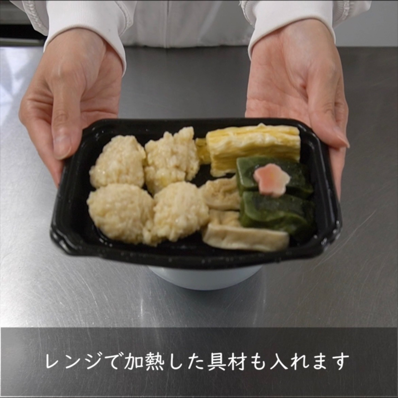 ※電子レンジの加熱を長くし過ぎると、食材の縮みや色変わりが発生する場合がありますので、ご注意ください。